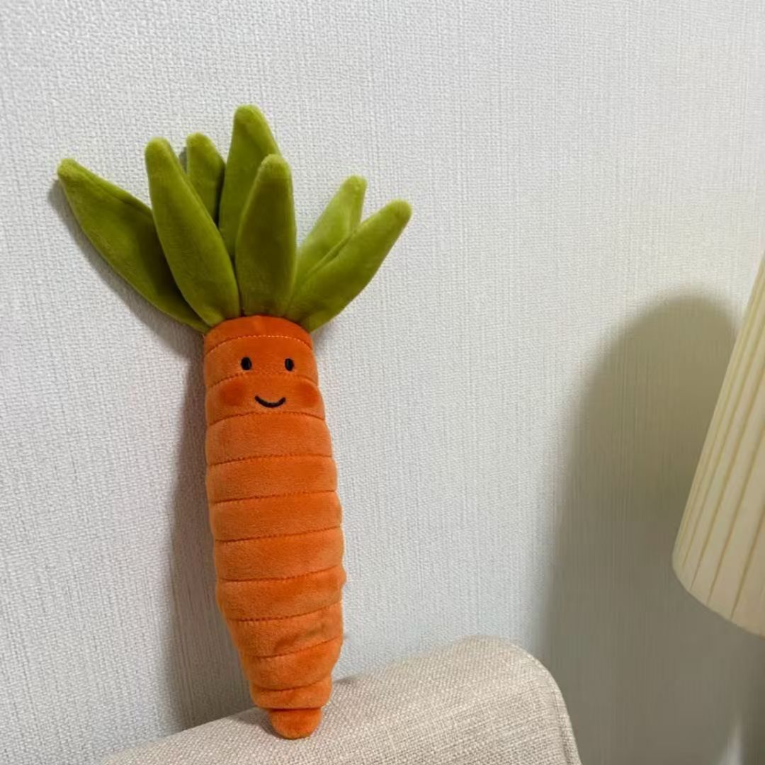 Soft and cute carrot plush keychains and fruit & vegetable plush dolls, ideal for bag accessories or cute gifts. Available for wholesale.