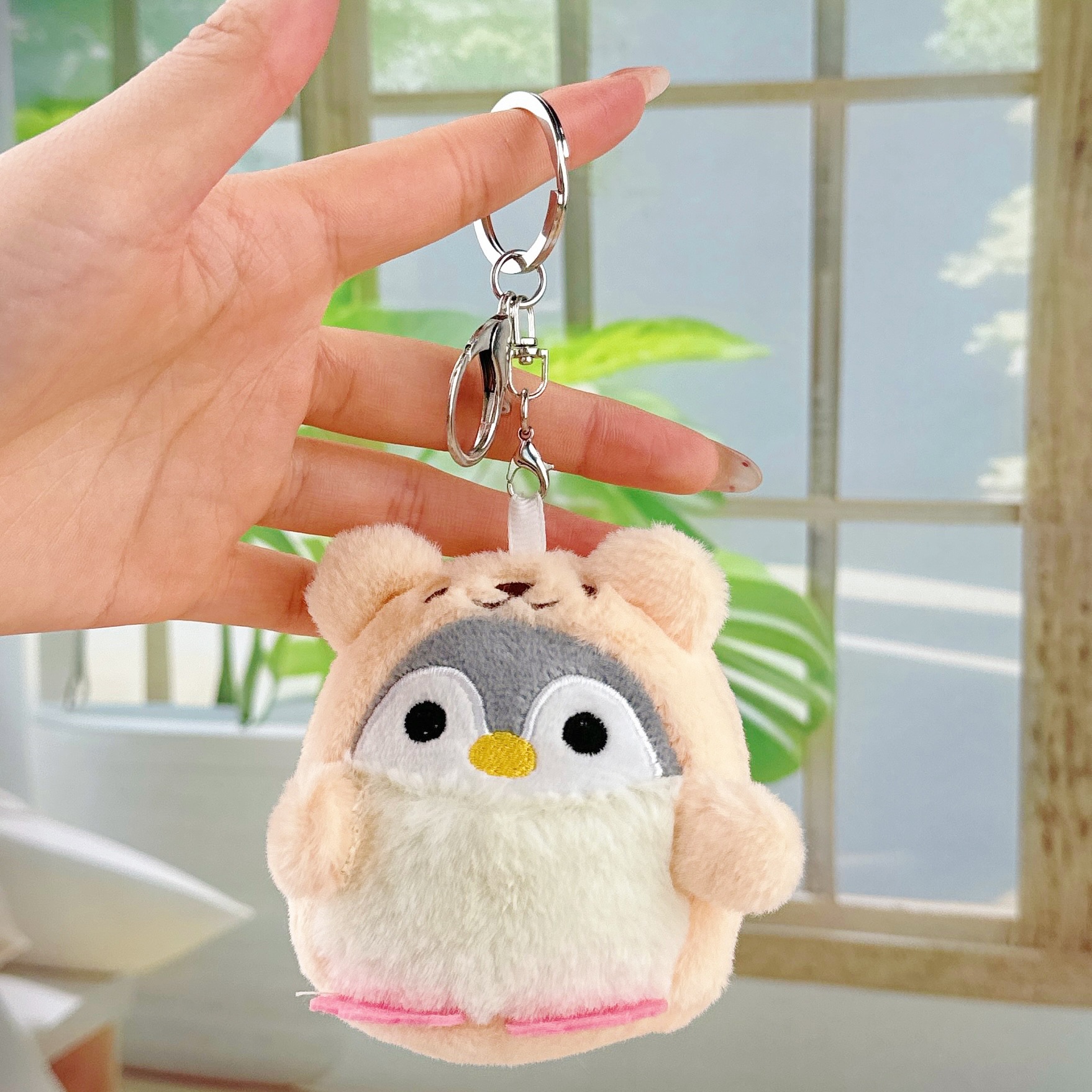 Adorable mini penguin plush toy with changeable outfits, soft-touch fabric, and keychain hook—perfect for bags, gifts, collections, or TikTok-style unboxing videos.