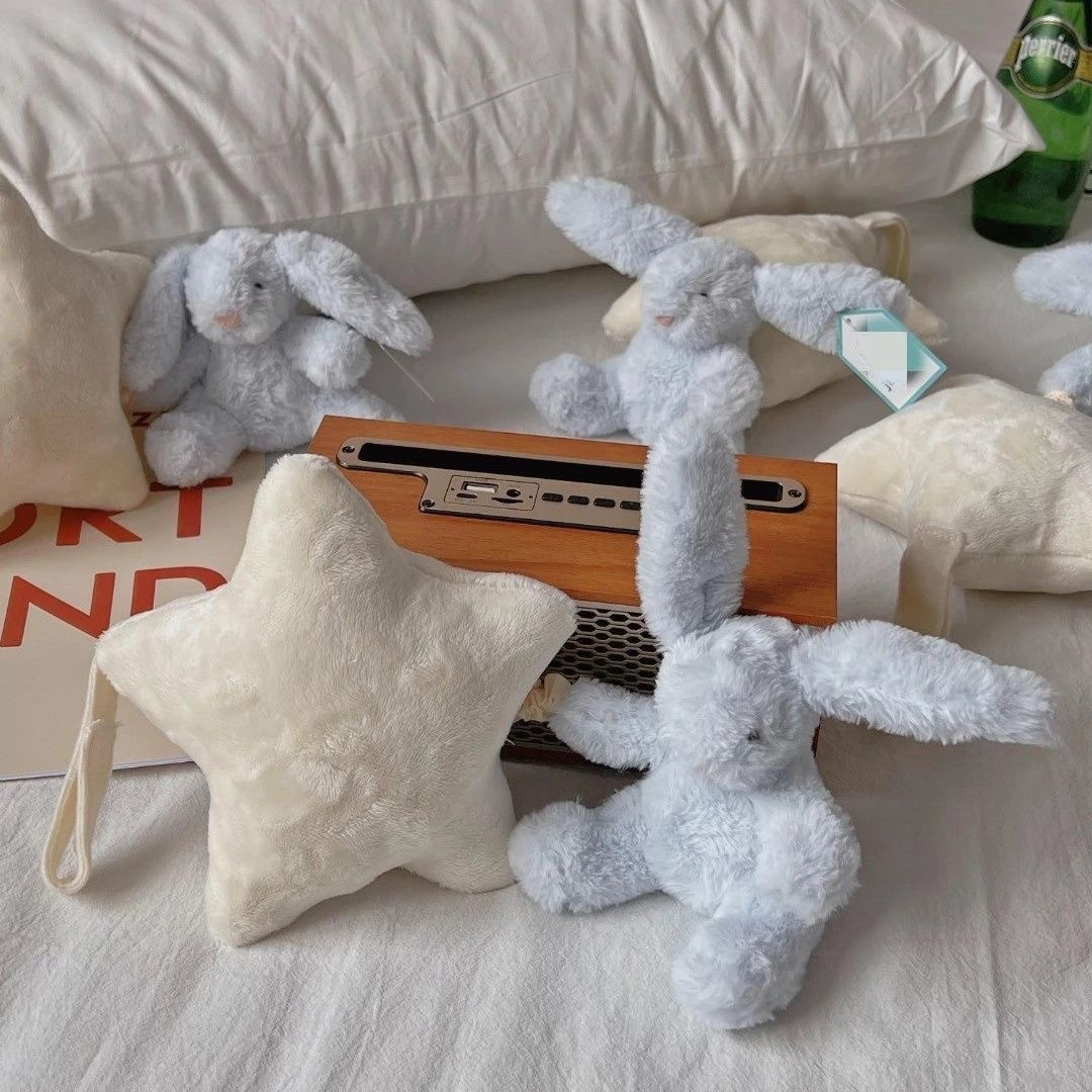 Shy Blue Star Bunny Music Box Plush Toy, Baby Crib Mobile, Soft Lullaby Toy